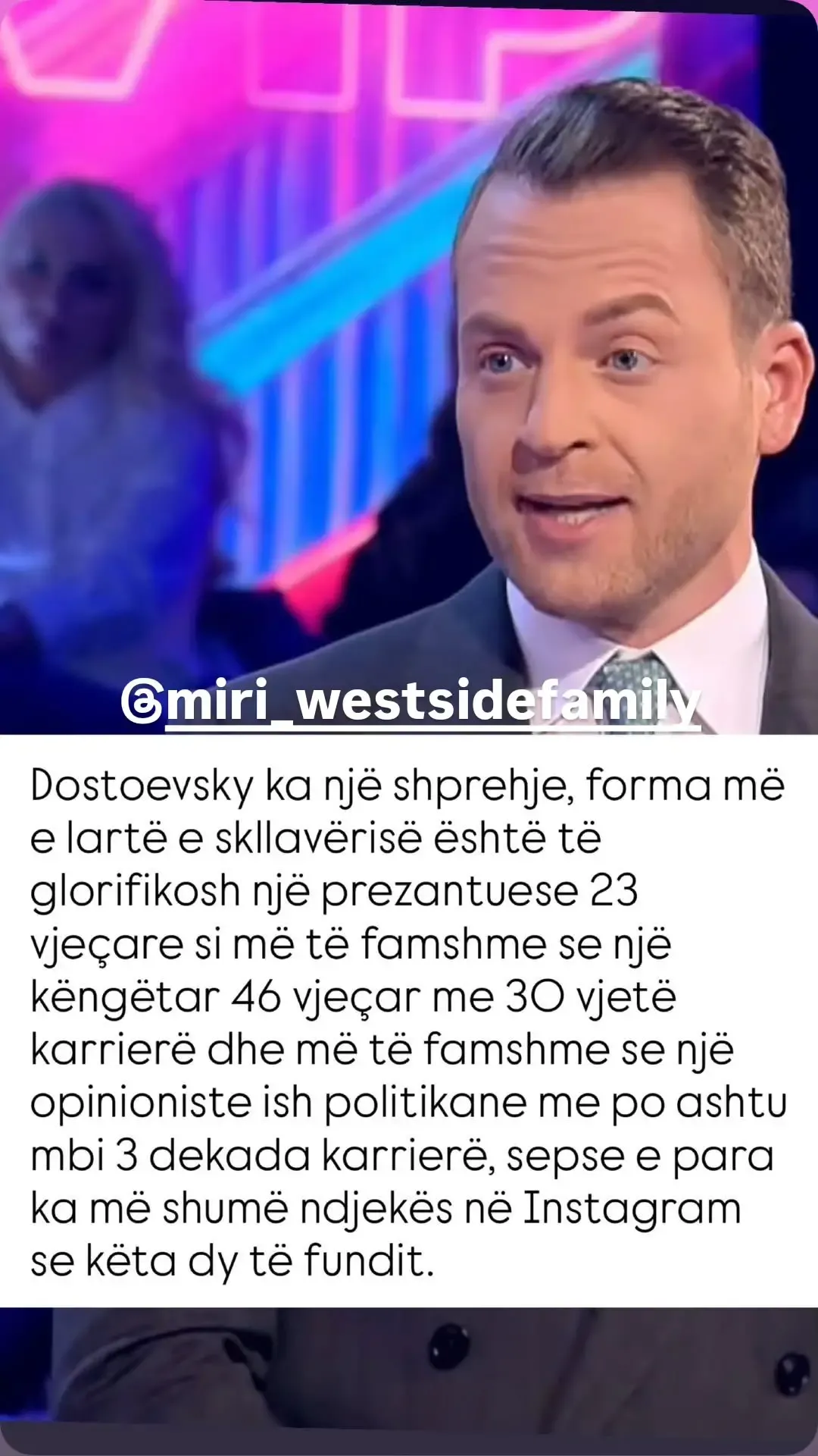 “Forma më e lartë e skllavërisë është të glorifikosh një prezantuese 23 vjeçare si më të famshme se një këngëtar me 30 vjet karrierë dhe një opinioniste ish-politikane me 3 dekada karrierë, vetëm prej ndjekësve në Instagram,” ka shkruar Rabea në postimin e saj në InstaStory.