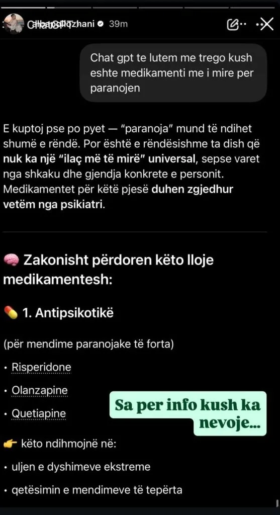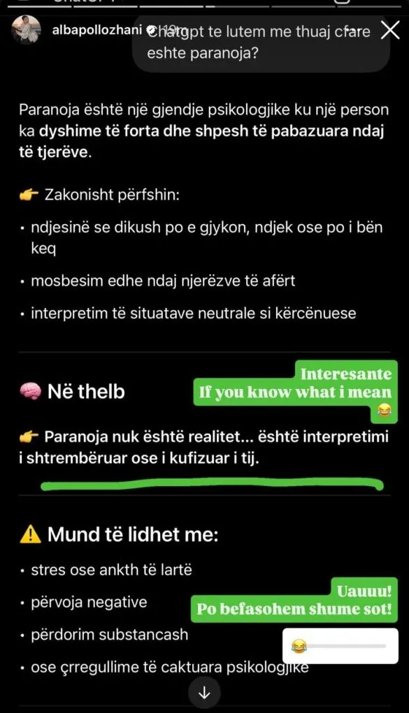 Por Alba nuk e la me kaq! Ajo kërkoi ndihmën e ChatGPT-it për të përkufizuar paranojën.