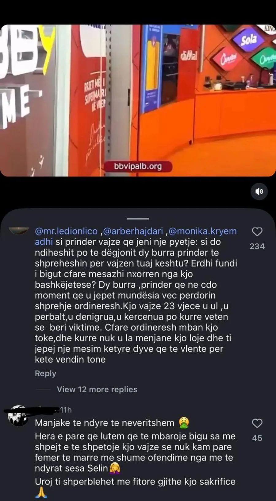 “Si do ndiheshit po të dëgjonit dy burra, prindër, të shpreheshin për vajzën tuaj kështu?” shkruan një ndjekës.