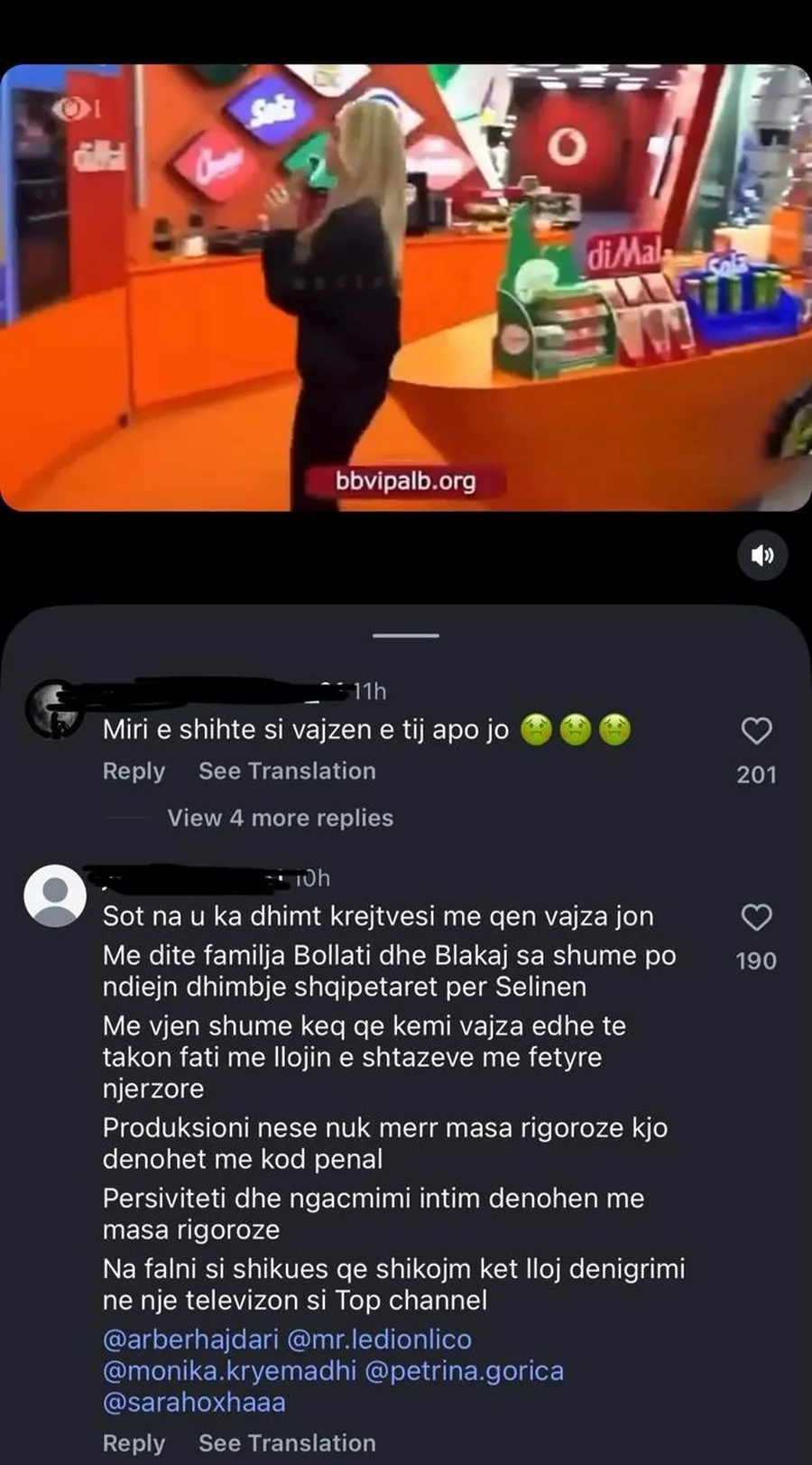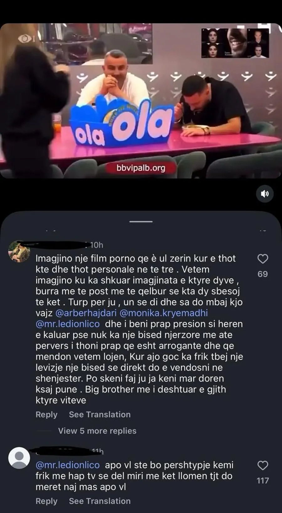 Në qindra komente të lëna në videot e shpërndara, fansat e programit kanë etiketuar drejtpërdrejt produksionin, moderatorin Ledion Liço dhe opinionistët Arbër Hajdari dhe Monika Kryemadhi.
